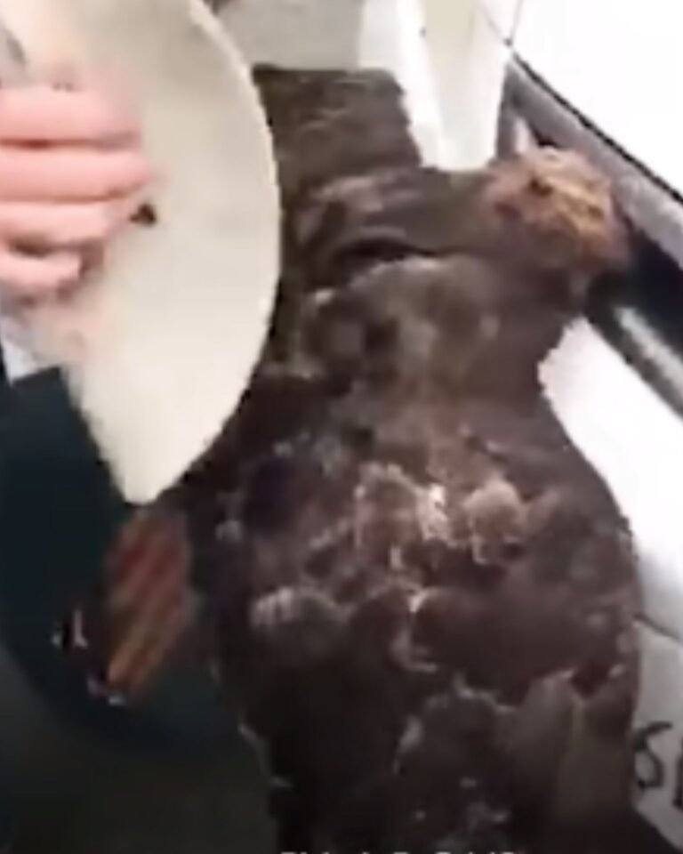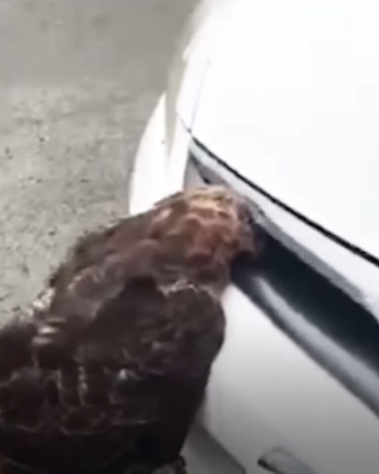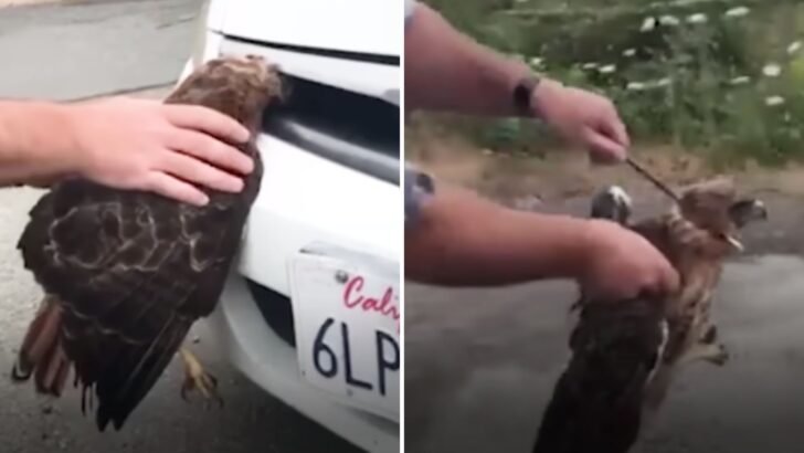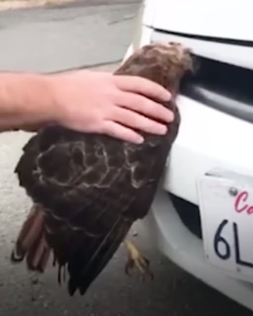 The driver, shocked by what just happened, pulled over to check on the hawk. To their amazement, the bird was alert and still breathing.