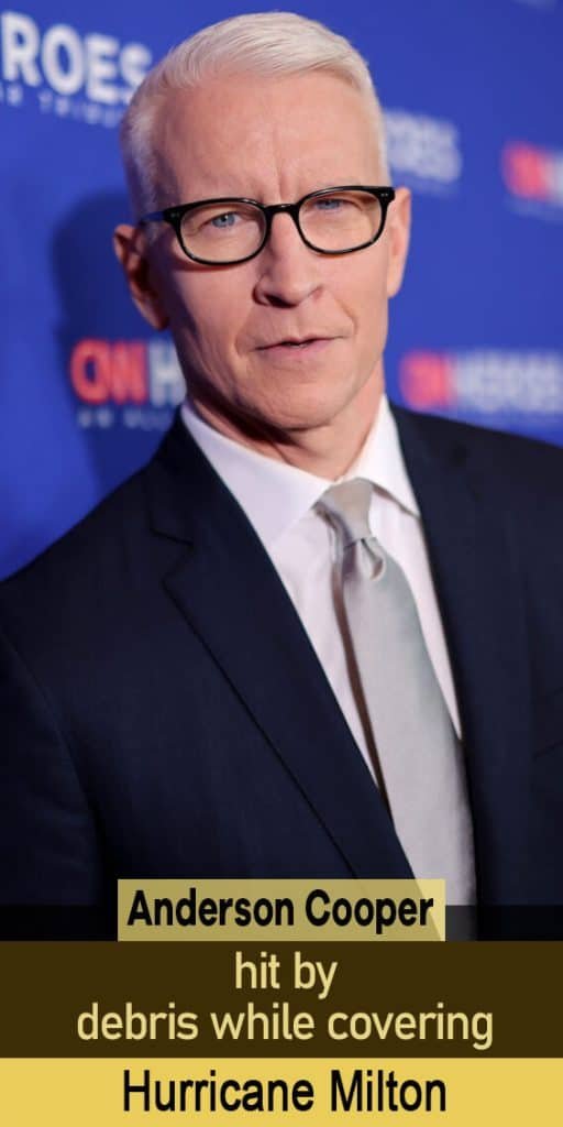 Online commenters have expressed concern for CNN’s Anderson Cooper after the TV host was hit in the face by debris while reporting live on Hurricane Milton.