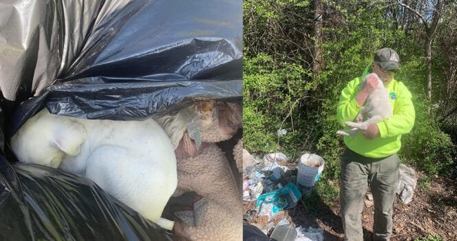Trash crew finds tiny puppy abandoned in garbage bag — one man sees him and knows it’s meant to be
