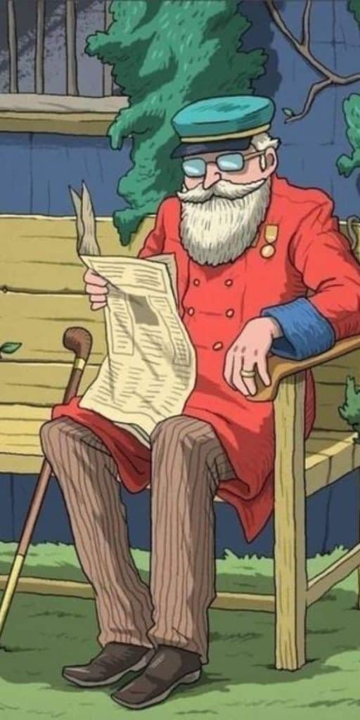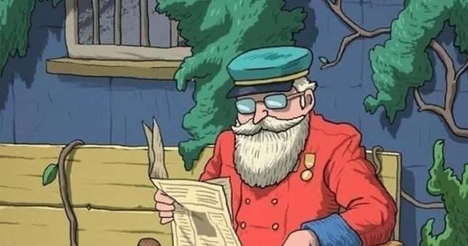 In the image below, you’ll see an old man sitting contently on a bench outside his cozy home. It’s a peaceful setting, but there’s one problem: his beloved pipe has gone missing! He’s too busy reading his newspaper to notice, but can you help him find it within one minute?