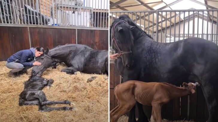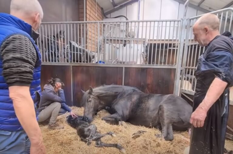 The loss of a child, whether in a human family or among animals, leaves a painful void that words often fail to describe. When Queen Uniek, a majestic Friesian horse, mourned the loss of her stillborn foal, her sorrow was heartbreaking.
