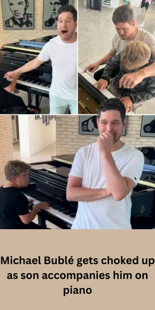 As the first few notes played, Bublé’s eyes widened in disbelief, and then, accompanied by his son who masterfully hit the keys of the piano, he sang the song for his followers, confessing that “I’m getting choked up.”