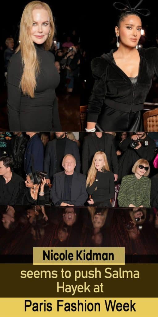 Nicole Kidman seems to push Salma Hayek at Paris Fashion Week