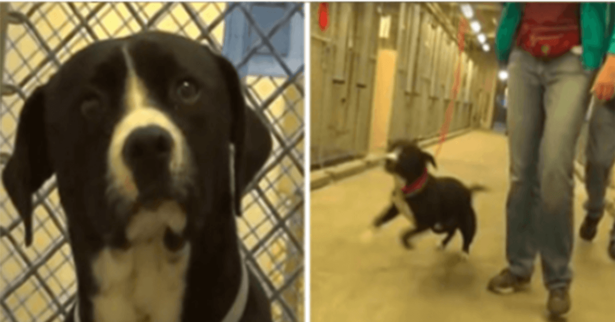 Scared Shelter Dog Jumps For Joy When He Realizes He’s Being Adopted