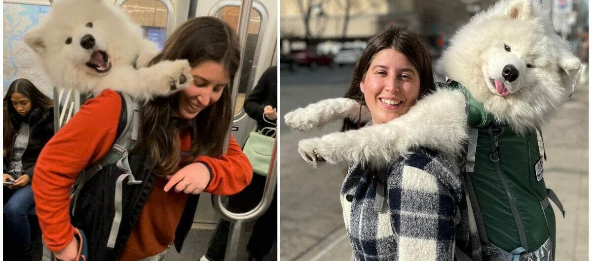 Woman carries her big, 52-pound dog in backpack to get around NYC subway rule