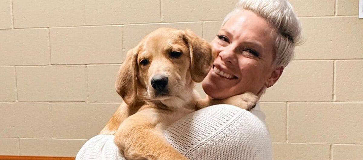 Pink fostered a shelter puppy on tour to find him a home — she ended up adopting him herself
