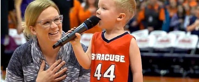 In front of an audience of more than 6,000, a 3-year-old boy sang the entire hymn