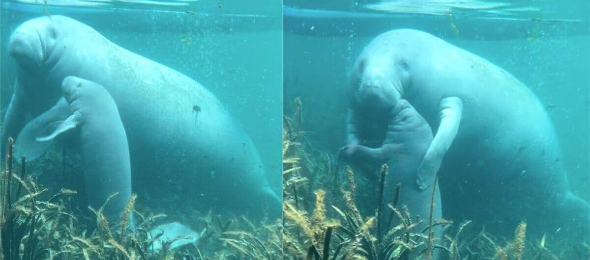 Heartwarming video shows mama manatee giving a sweet hug to her baby