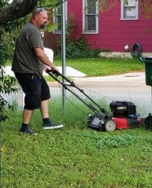 This is my dad, mowing my mom’s lawn. They’ve been divorced 28 years.