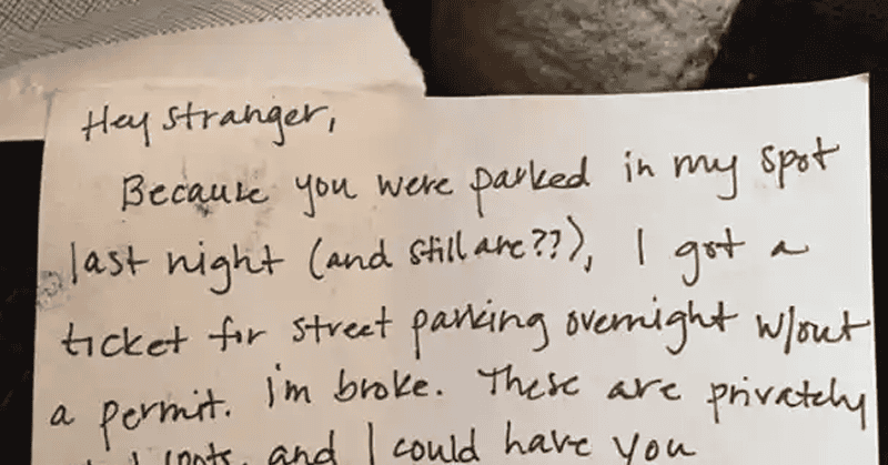 She left an angry note on a stranger’s car when they parked in her spot — but it actually led to a major good deed