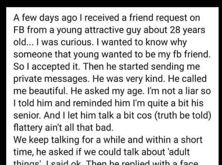 A few days ago I received a friend request on FB from a young attractive guy about 28 years old…