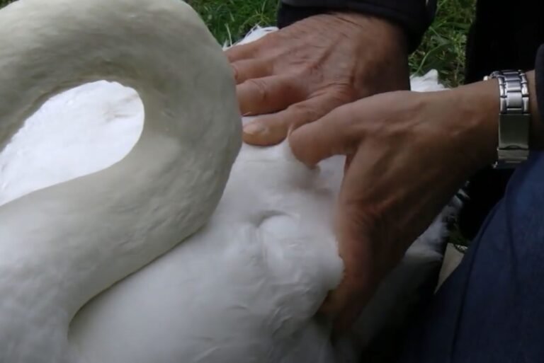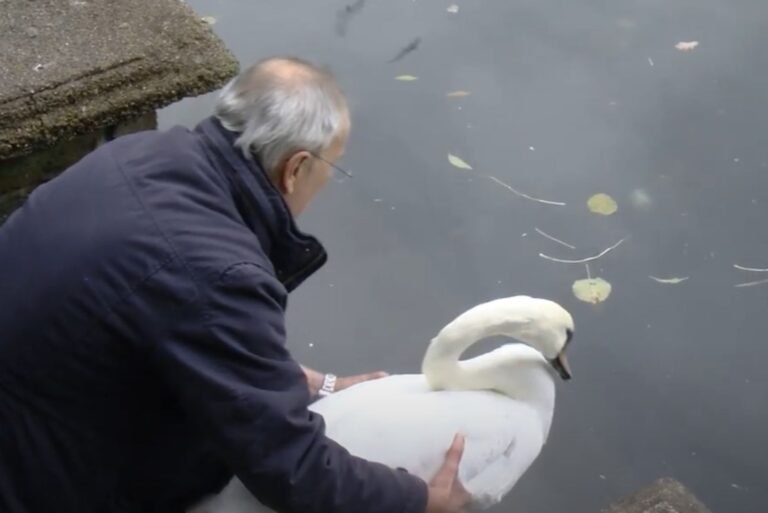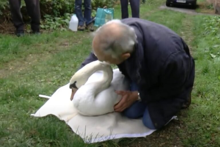 Once he stepped out of the car, Simon swiftly caught the swan by its neck. He wanted to make sure she had no serious injuries before releasing her back into nature.