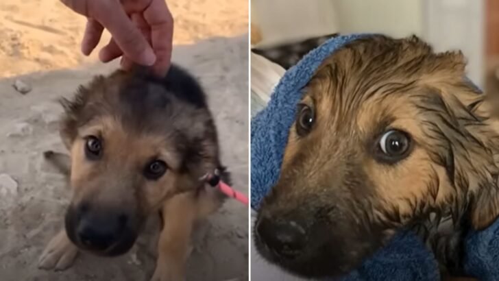 This adorable pup faced a grim fate after being heartlessly abandoned in the desert. Fortunately, he was found just in time and given a new chance at life.