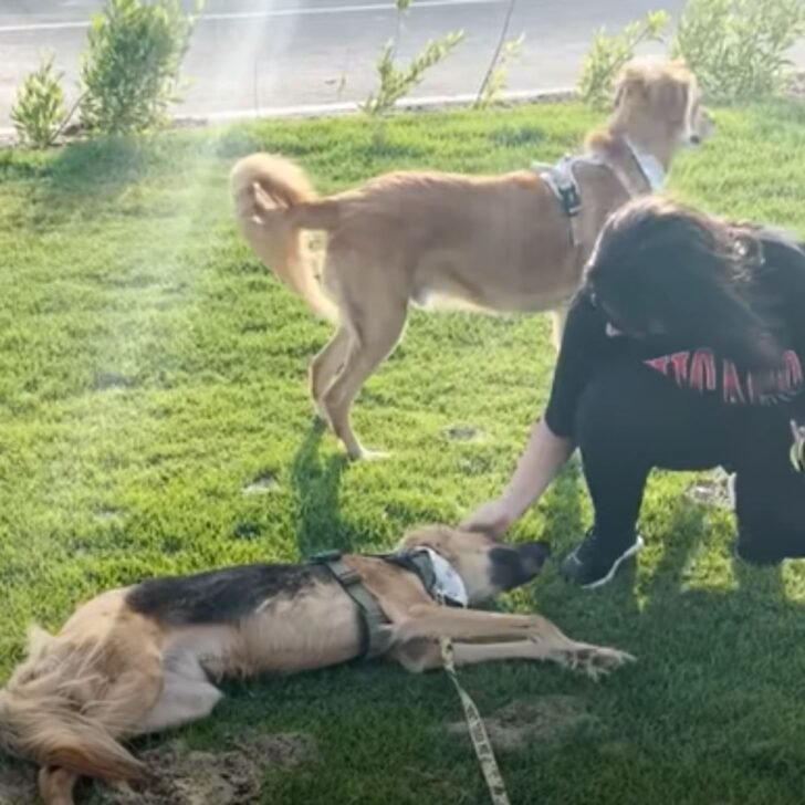 She started introducing him to different people with their dogs, all while encouraging him with delicious treats and ensuring everything was all right. With the right approach, they quickly made progress.